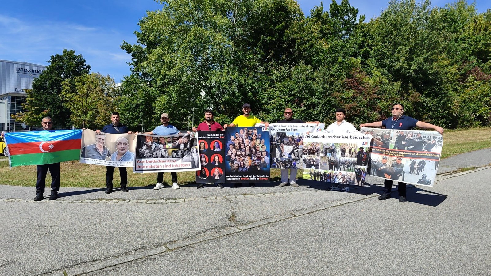 Am 4. September 2025 veranstalteten Aktivistinnen und Aktivisten der Organisation DAS vor dem Gebäude der Passauer Neue Presse in Passau eine Protestkundgebung. Organisiert wurde die Aktion von den in Deutschland politisch im Exil lebenden Rauf Nəsibov und Orxan Həsənli.