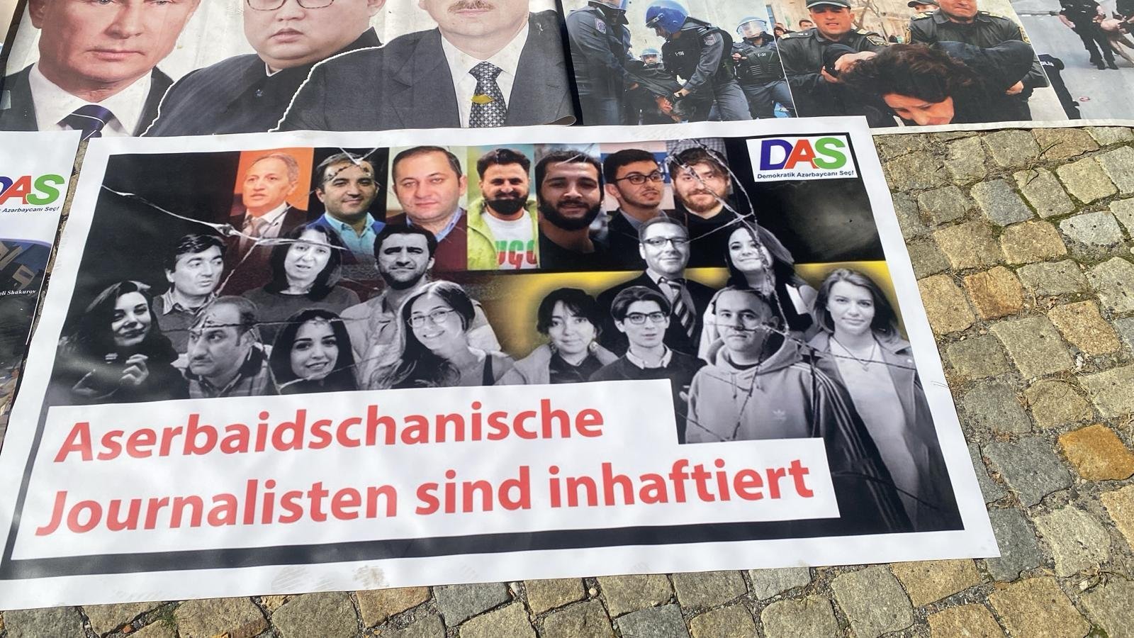 DAS təşkilatının fəalları Berlində jurnalistlərə və siyasi məhbuslara azadlıq tələb edir.