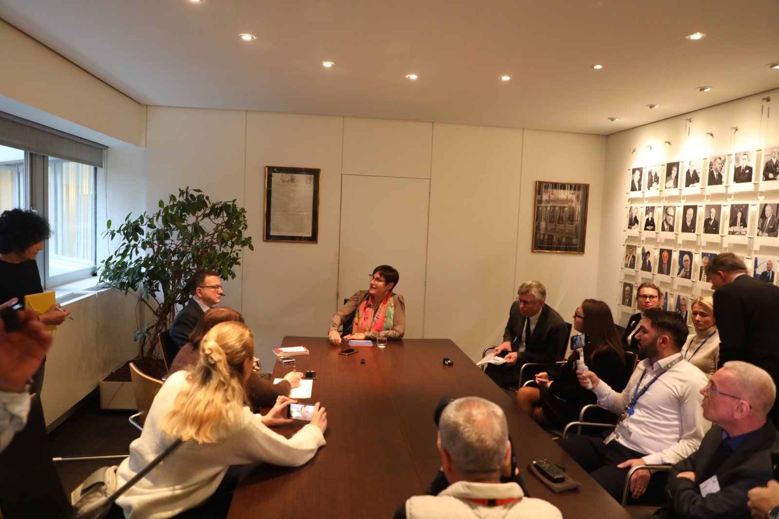 Strasburq, 27 yanvar 2026 — Avropa Şurası Parlament Assambleyasının (AŞPA) yeni seçilmiş xanım prezidenti Petra Bayr bu gün Strasburqda mətbuat nümayəndələri ilə ilk görüşünü keçirib. Xanım Petra Bayerin iş otağında təşkil olunan tədbirdə məhdud sayda mətbuat nümayəndəsi iştirak edib. AŞPA prezidenti ilə görüşə Azərbaycandan Foto.info.az xəbər agentliyi, AzTV-nin Avropa üzrə nümayəndəsi, AzerFreedom TV jurnalistləri, eləcə də Türkiyə, Moldova və Ukraynadan olan media təmsilçiləri dəvət olunublar. Strasburgda keçirilən AŞPA-nın qış sesiyasını işıqlandırmaq üçün 270 -dən artıq Avropa və Asiyanın nüfuzlu TV və xəbər agentliklərinin jurnalistləri iştirak edir.