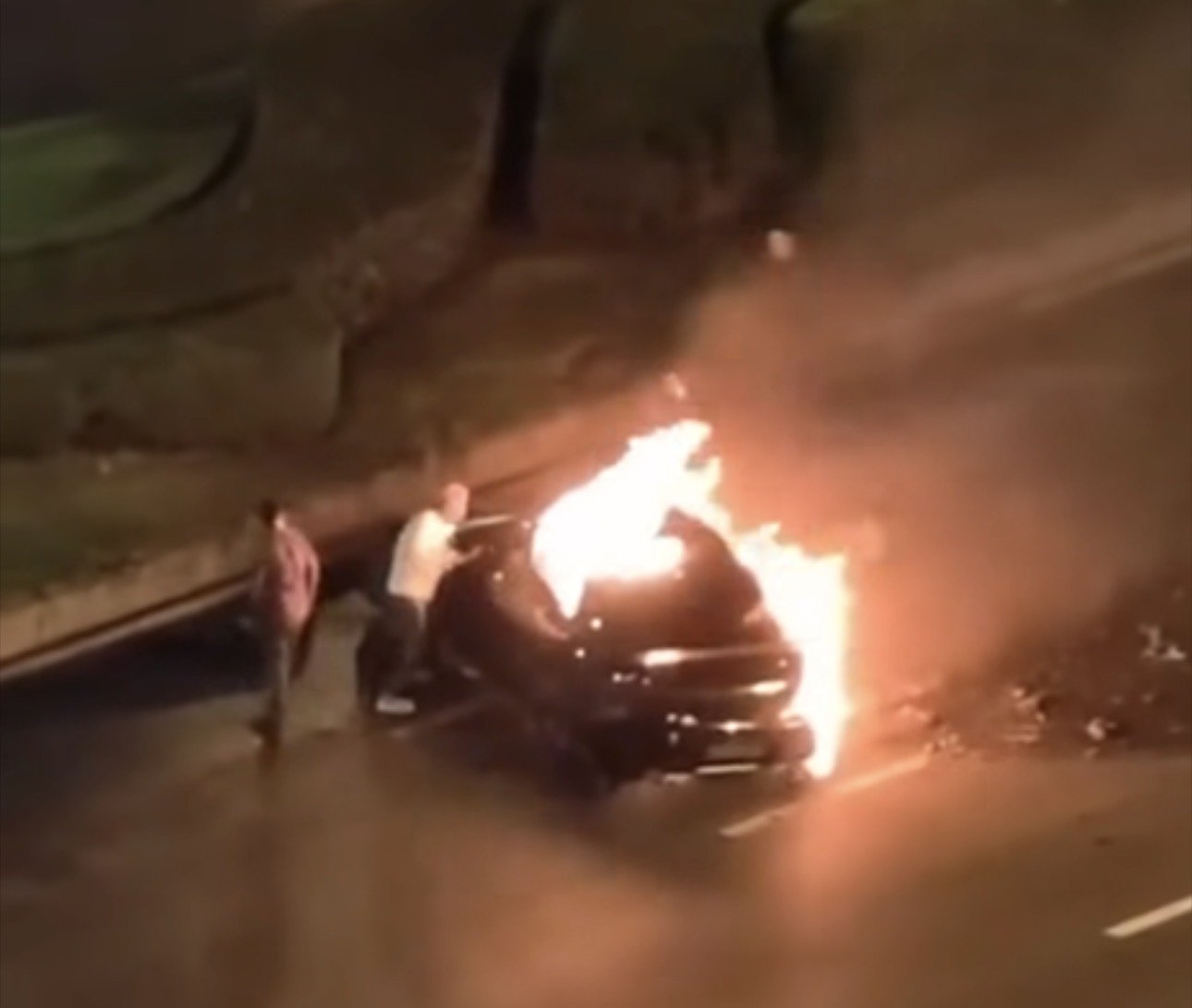 Hadisə yerində olan insanlar sürücünü xilas etməyə çalışsalar da, nəticə verməyib. Qısa müddət ərzində avtomobil tamamilə alova bürünüb.