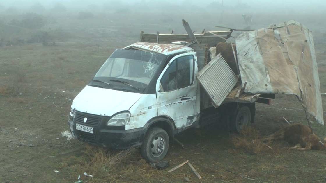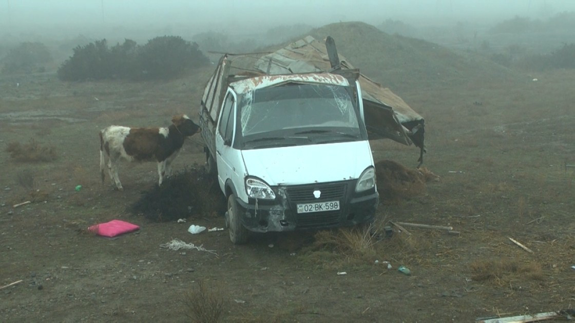 Hadisə nəticəsində yoldan çıxan “Qazel” markalı avtomobilin yük yerində daşınan iribuynuzlu heyvan da tələf olub.