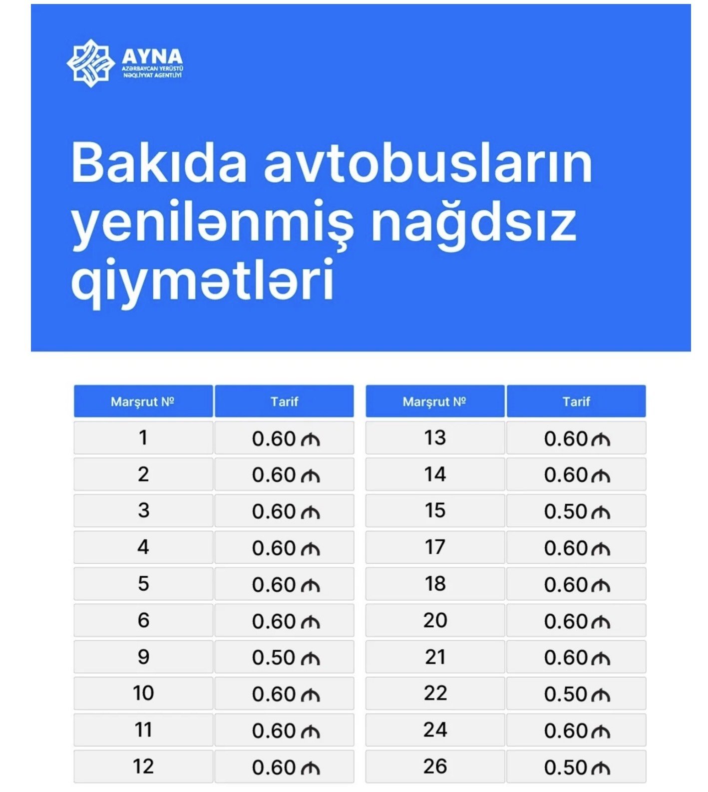 Bu barədə məlumatı Azərbaycan Yerüstü Nəqliyyat Agentliyi (AYNA) yayıb. Agentlik **Azərbaycan Respublikasının Rəqəmsal İnkişaf və Nəqliyyat Nazirliyi**nin tabeliyində fəaliyyət göstərir.