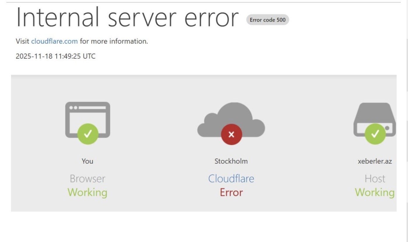 “Cloudflare-in xidmətlərindəki nasazlıq səbəbindən istifadəçilər ‘Cloudflare Error’ tipli xətalarla qarşılaşırlar.”