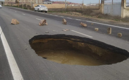 Masazırda yeni çəkilən yol çöküb