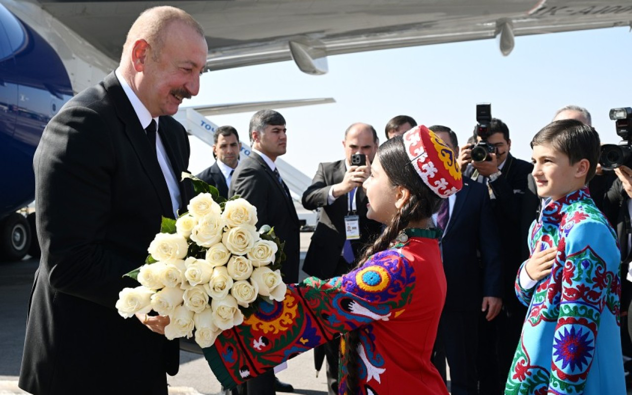 Düşənbə Beynəlxalq Aeroportunda Prezident İlham Əliyevin şərəfinə fəxri qarovul dəstəsi düzülüb. Dövlət başçısını Tacikistan Ali Məclisi Milli Məclisinin sədri Rüstəm Emoməli və digər rəsmi şəxslər qarşılayıblar.
